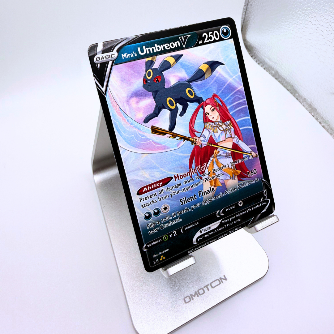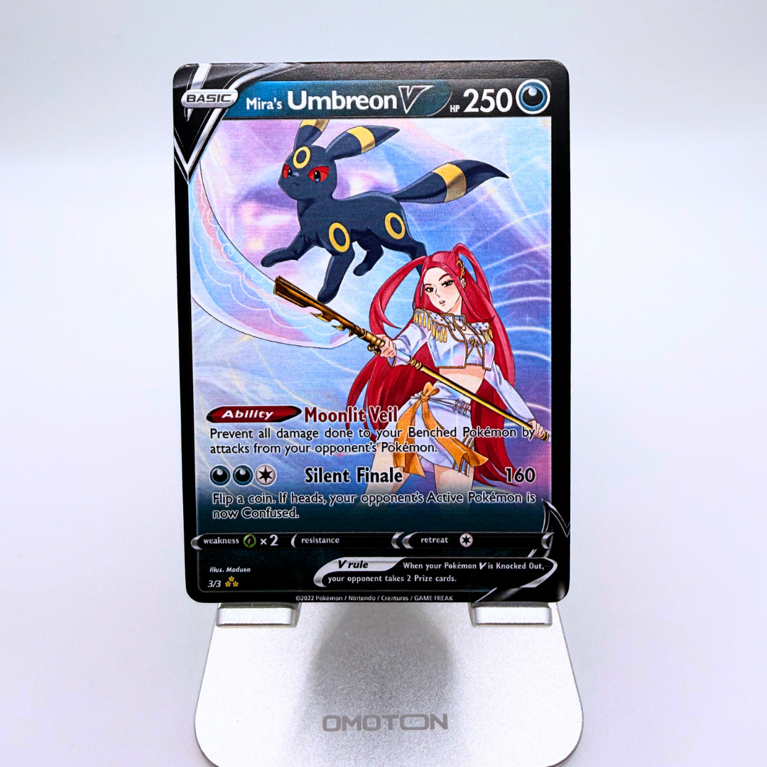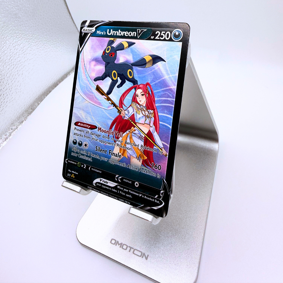 Enter the dark crossover between K-Pop Demon Hunter and Pokémon with this exclusive Mira’s Umbreon V custom card! Inspired by Mira’s fierce determination and Umbreon’s mysterious moonlit power, this card is the perfect collectible for fans who love a blend of elegance and darkness.